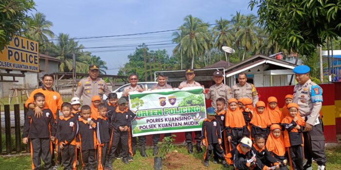 BATOBO.COM, KUANTAN SINGINGI – Polisi tidak hanya menjaga keamanan, tetapi juga ikut menanamkan nilai kepedulian lingkungan sejak usia dini. Inilah yang dilakukan